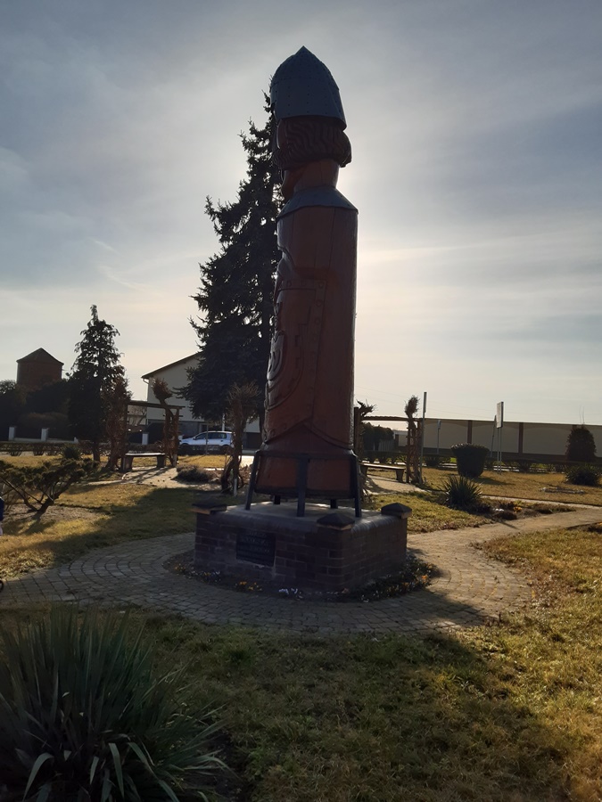 Wychodząc z kościoła kierujemy się na lewo i dochodzimy do skwerku przed Urzędem Gminy, gdzie postawiona jest rzeźba założyciela osady – rycerza Awdańca, a przed Urzędem Gminy znajdziemy plac zabaw wraz z ławeczką upamiętniającą partnerstwo gminne Pakosław-Moult.
